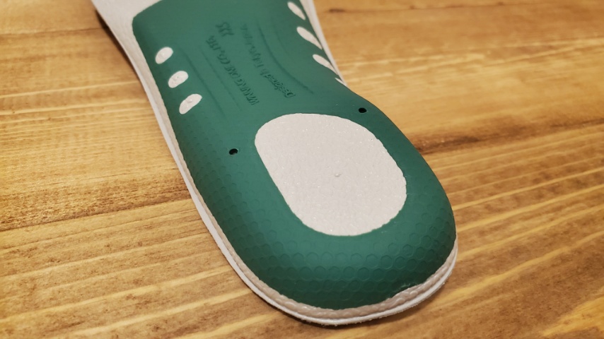 加えて厚みが3.0mmと気持ち薄手の厚みであるため、内容積の少ないシューズ、横幅のタイトなシューズにも適合する設計です。