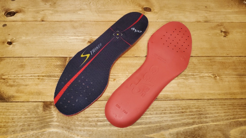 サッカー用なので普段履く靴に入れるにはクッション性が低い印象も受けますが、一応履けない事はない一枚となっていました。