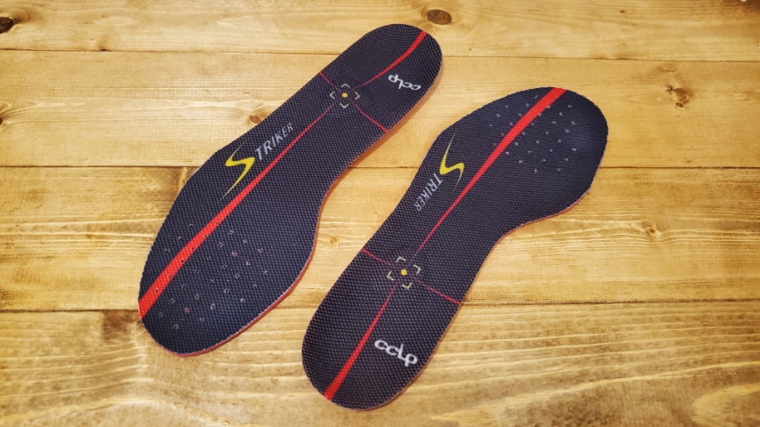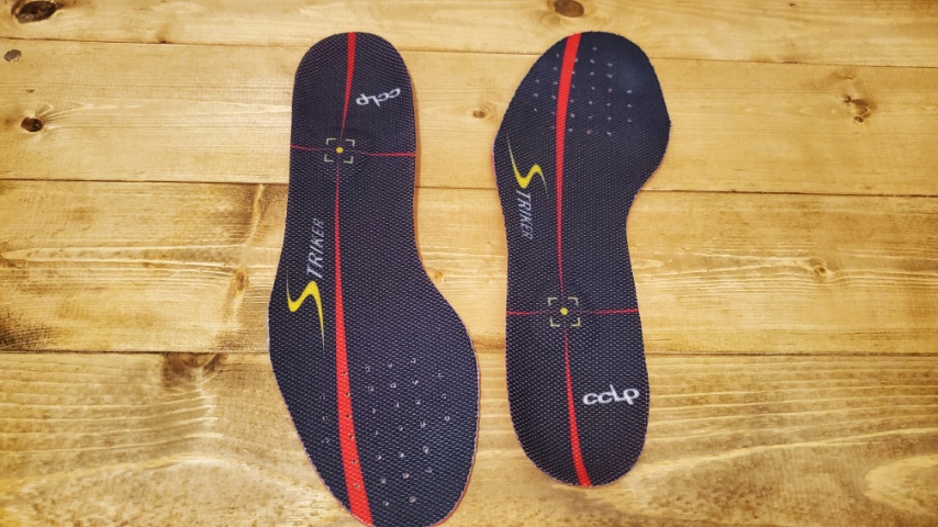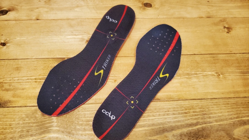 立方骨、踵骨前を支持する事で小指側、薬指側の動きを改善し、外側へのぐらつき、ねんざを軽減させるBMZシリーズの競技用インソール、カルパワーストライカー。