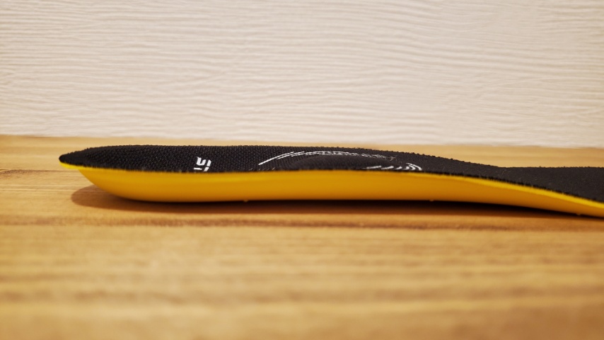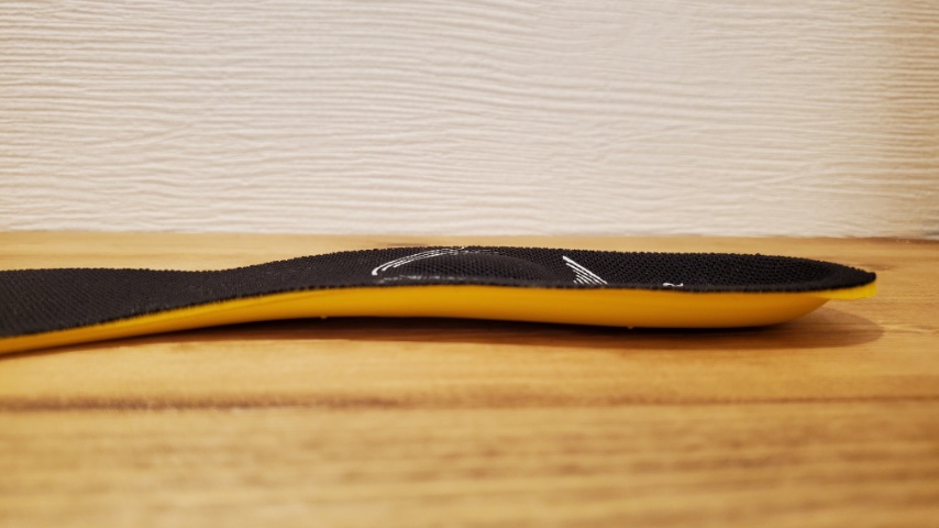 履き心地としては立方骨側の支え、踵骨前への支えが多少感じられ、足の外側への支持は弱いながらにある程度感じとる事が可能です。