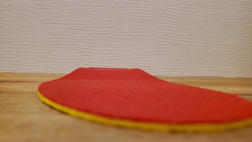 この緩やかな傾斜でストライカーレボーテ レッドは立方骨部を支持し、小指側、薬指側の機能を改善させる形状ですが、基本的に内側縦アーチや横アーチ、踵骨の内外反に関しては関与しない設計です。