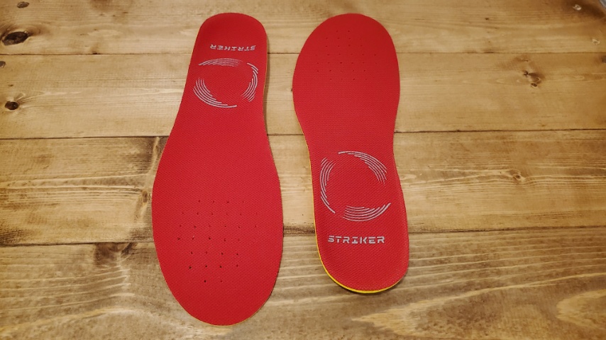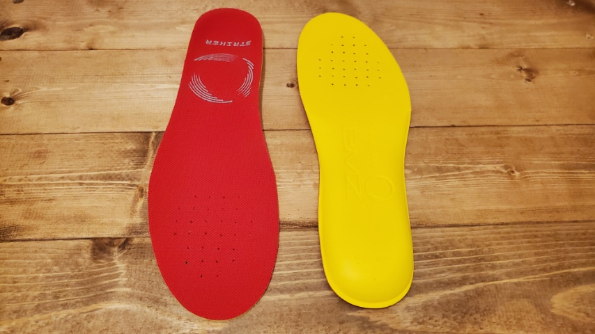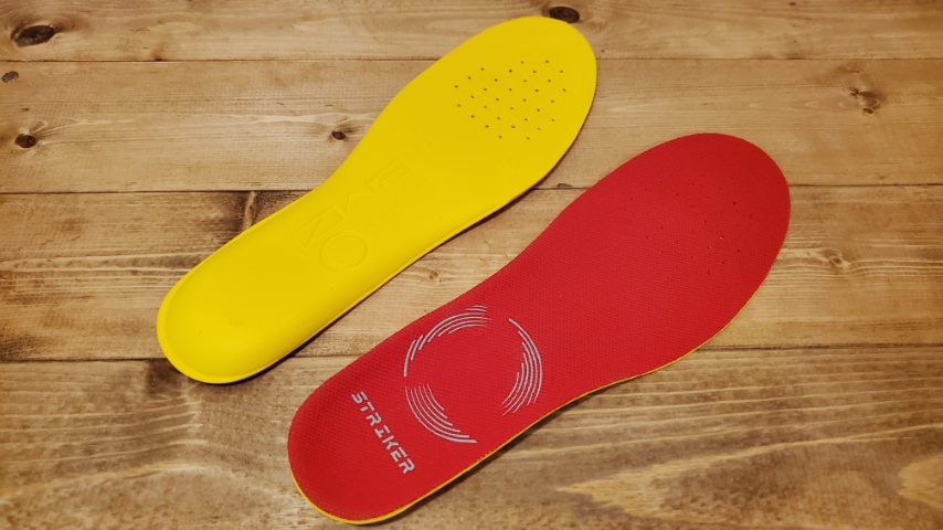 類似製品のストライカーレボーテ ブラックとの違いは主にこの立方骨支持、踵骨前支持の方法の違いであり、支持の強さ、厚み、硬さに関しては概ね同じ製品。