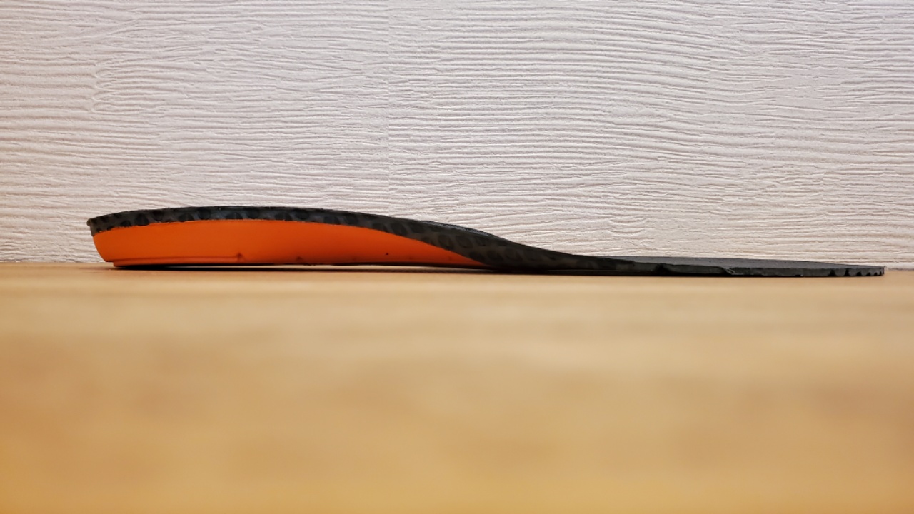 ぐらつきをある程度軽減する仕様で、フィットすればアーチ部への負担軽減が期待できそうな形状となっています。
