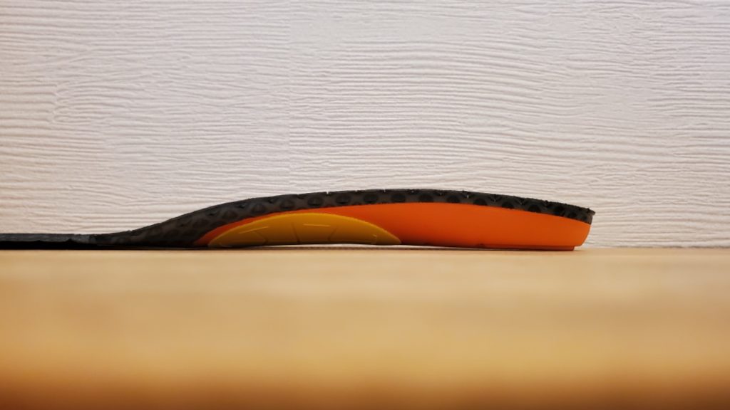 筆者自身がミッドアーチなのですが、アーチ部の支持自体は赤色サポートを追加することで感じやすくなりました。