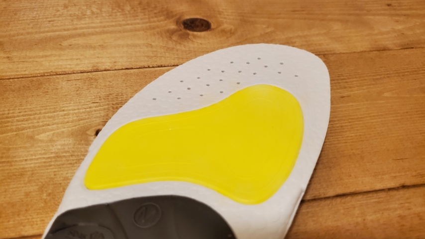 最後に、足元を支えるアーチサポートに関しては、このハイアーチタイプは外側をやや強く支持するように設計しているのが特徴となっています。