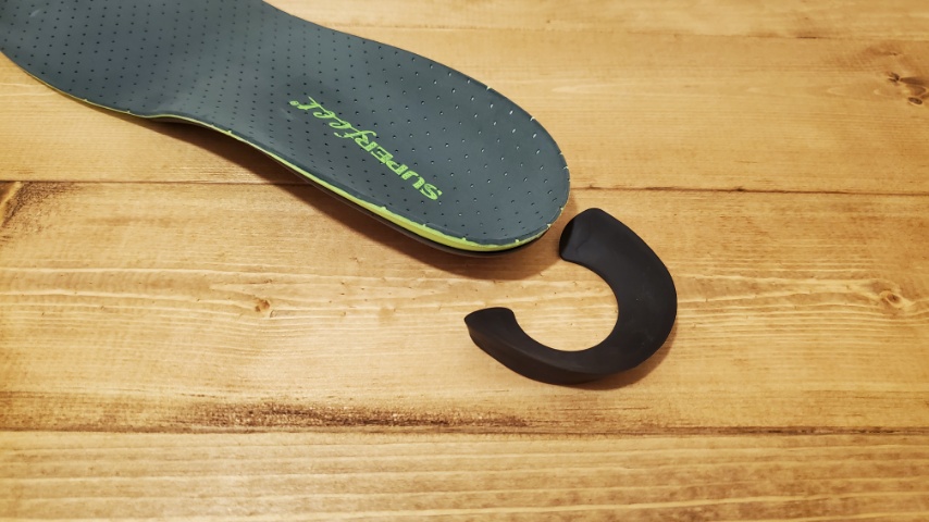 その上で、載距突起部へのサポートもかなりしっかりしており、内側へかかとが倒れるような感触は少なく、かつ外側へのサポートも効いている感覚を受けます。